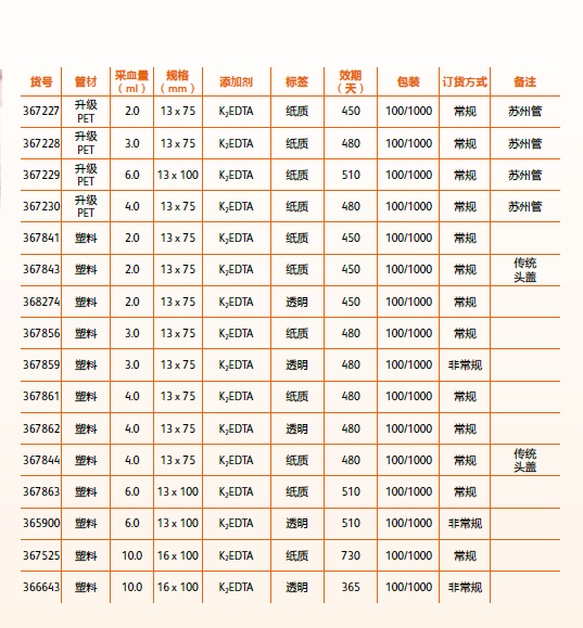 血常規管含有(yǒu)EDTA的(de)二鉀鹽或三鉀鹽,其中二鉀鹽呈霧狀均勻噴塗于管壁。該管主要(yào)用(yòng)于血常規
